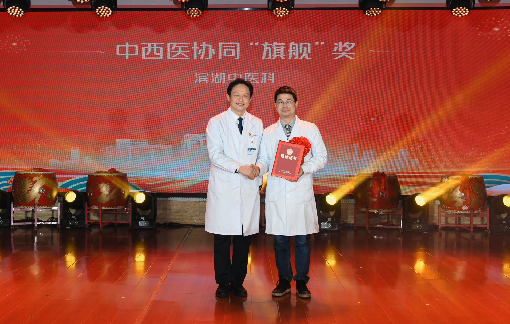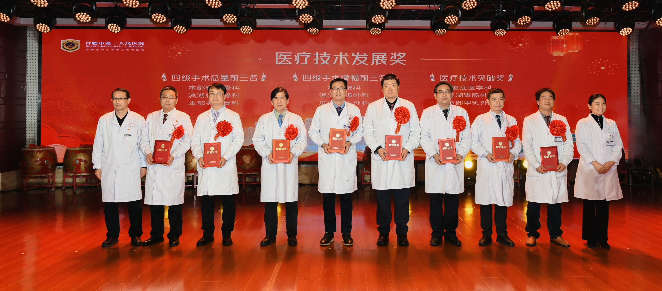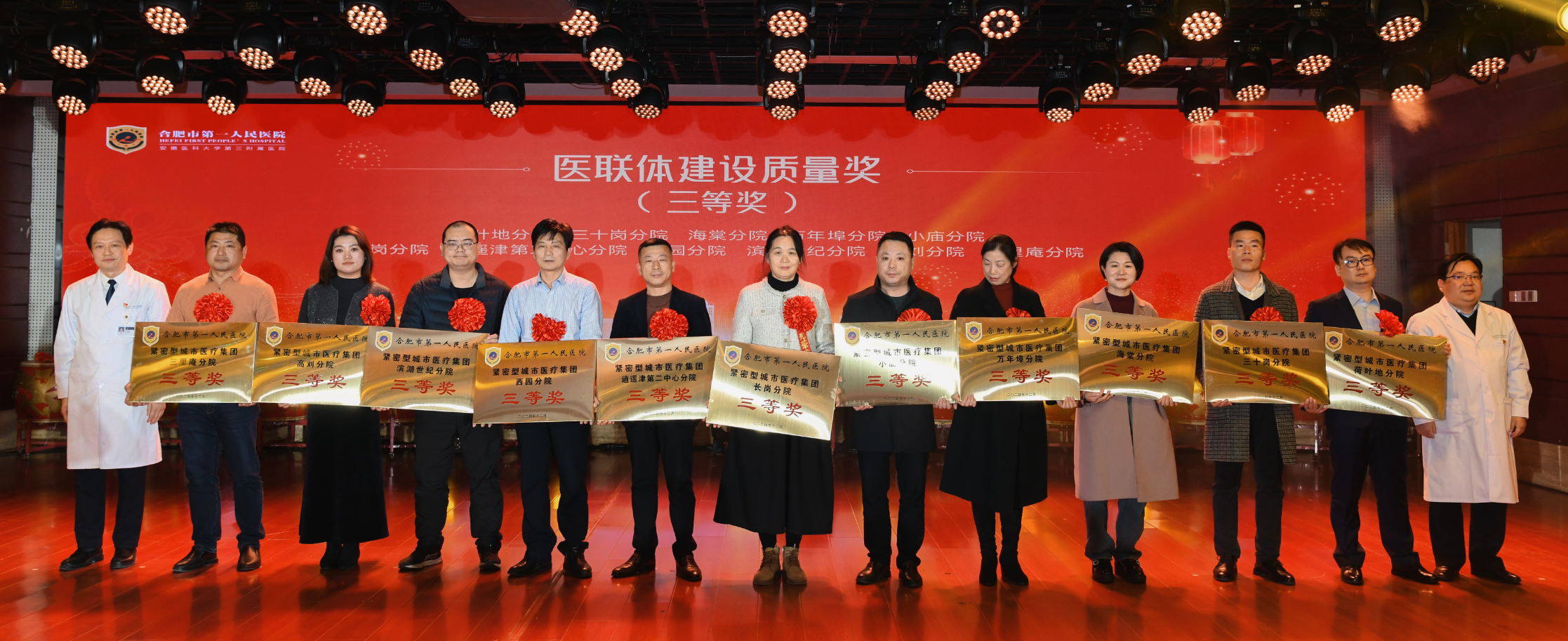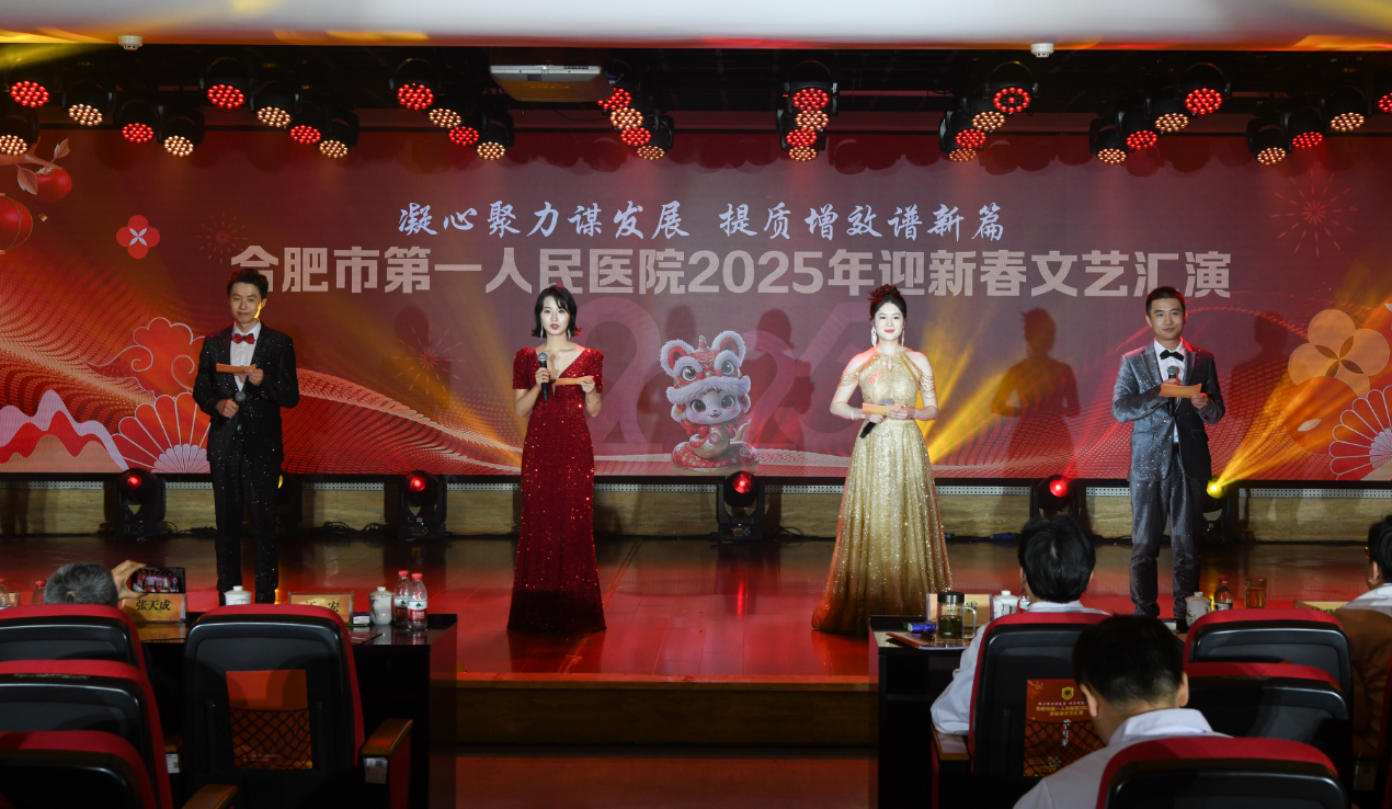 1月23日下午,麻豆性爱 2024年工作总结表彰及2025年工作计划大会暨迎新春文艺汇演在滨湖院区隆重召开。合肥市卫健委党委书记、主任张晓峰出席大会并讲话。医院领导班子、江淮名医、受表彰人员、退休职工代表、医联体单位代表、科主任、护士长、博士、行政中层、支部书记参会。大会在庄严的国歌声中拉开帷幕。