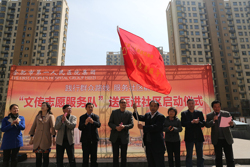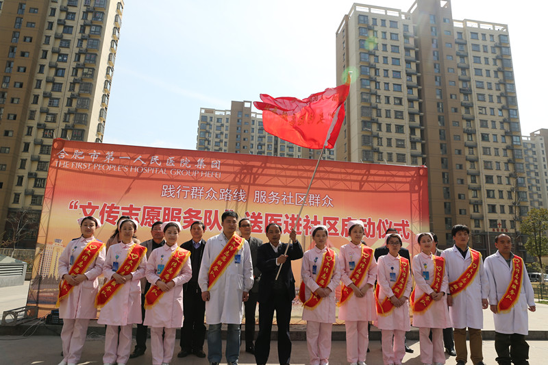“文传志愿服务队”送医进社区活动启动仪式上,合肥市卫生局(药监局)党委书记胡国春、市卫生局(药监局)调研员、党的群众路线教育实践活动第一督导组组长李邦国,麻豆性爱