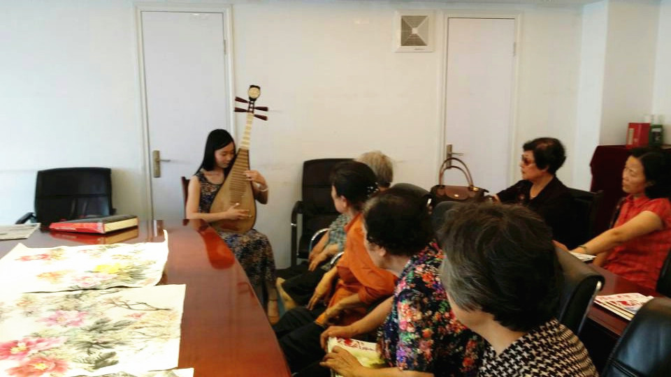 一曲金戈铁马、荡气回肠、震撼人心的琵琶武曲《十面埋伏》把气氛带入了高潮,老同志们纷纷拍手称赞。随后,胡佳静又演奏了几首江南小曲,配合着桌上的山水泼墨、鸳鸯牡丹,好一副诗情画意的场景!在欣赏完余音袅袅,不绝如缕的琴声后,离退办的陈老师细心指导,老同志们纷纷技痒,开始着手画了起来……