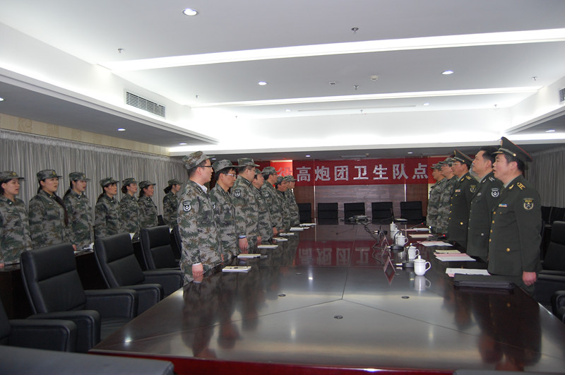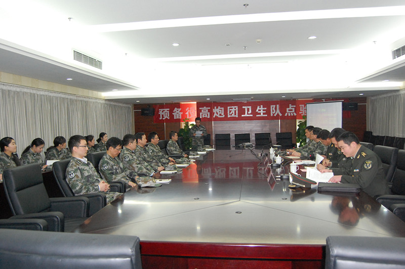 预备役高炮团卫生队点验大会在滨湖医院医技楼14楼会议室顺利举行,预备役高炮团政委夏捍东、后装处长邓汝、合肥市第一人民集团医院副院长吴冬雷、阚明等老兵、新兵参加了会议。会议由邓汝处长主持。