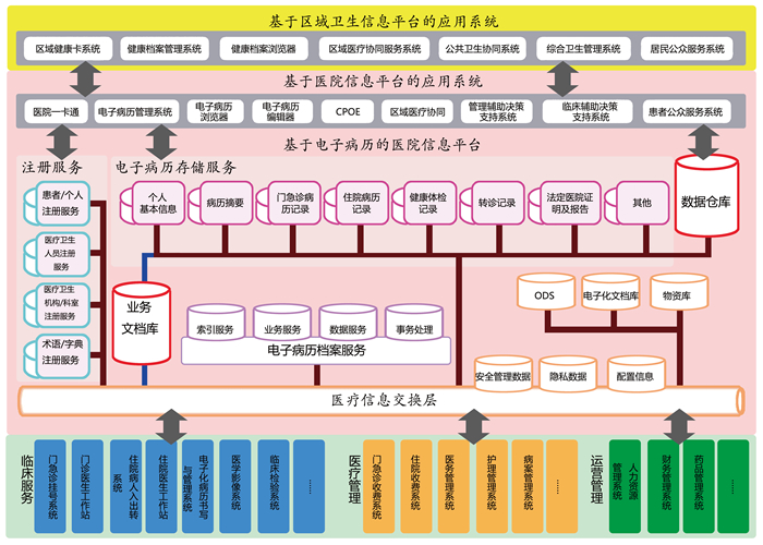 依托于企业服务总线(Enterprise Service Bus, ESB),搭建医院信息集成平台,类似配置一个“插线板”,定好插口规则,凡适合插口规则的电源都可以插上来,最终可以实现各应用系统在数据层面可以相互交换共享、在应用层面可以相互调用、在流程层面可以相互协同,并通过统一门户查询和处理所需的各种信息。