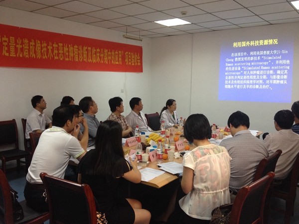 验收会首先由项目负责人夏主任汇报项目的研究背景、主要研究内容、执行情况、完成情况以及目前取得的主要研究成果。该项目通过与美国普渡大学合作,采用该校生物医学工程系的Ji-Xin Cheng 教授发明的新技术“Multimodal nonlinear optical microscopy”,并利用他的先进设备“Multimodal nonlinear optical microscope”对早期肿瘤进行定性及定量诊断,预后评估,并邀请3名美国专家来麻豆性爱