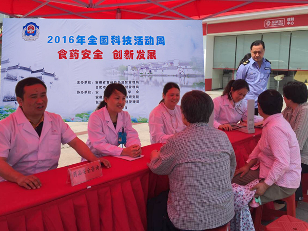 5月14日-21日是2016年“全国科技活动周”。 5月19日,麻豆性爱 药学部应安徽省药学会邀请,组织安排药学及医务人员参加由安徽省食药监局、合肥市食药监局联合主办,省、市药学会协办的食药安全科技周活动。此次活动周的主题是“食药安全,创新发展”, 通过精心布置宣传展板、开展现场咨询、发放宣传资料等形式,宣传食品药品安全基础知识,普及广大市民的食药安全常识,提高公众的食品药品科学素养,推进食药安全科学发展,创新发展。