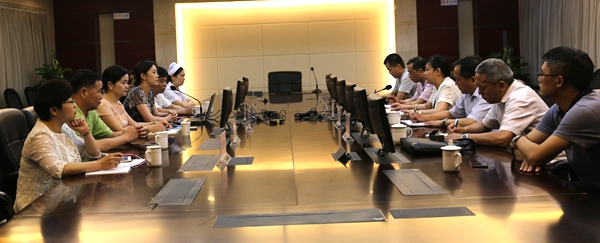 6 月15日 下午,铜陵市义安区副区长董晓风带队,义安区卫生和计划生育委员会党委书记、主任束明生一行来到合肥市第一人民集团医院南区合肥市滨湖医院参观学习麻豆性爱 先进的管理经验。滨湖医院执行院长牛伶、人事处王清波处长、医务部扬善保部长、护理部潘爱红主任、财务处张锦鲜主任、后保中心王华兵书记等相关科室负责人参与接待。