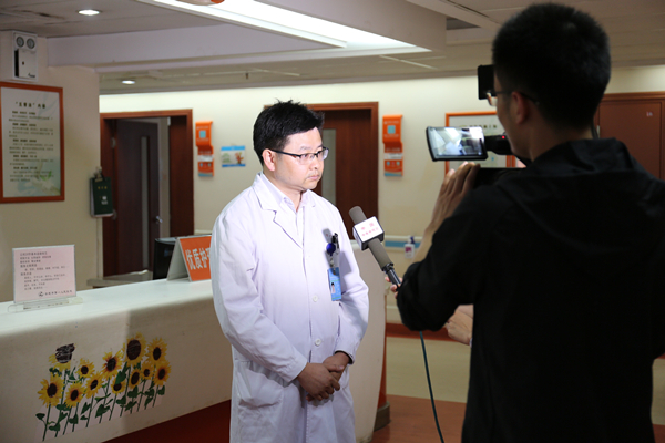 日,中央电视台在滨湖医院采访肝胆外科黄俊主任和器官捐献协调员杨娟,对安徽枞阳退役军人胡晨捐献器官的事迹进行报道。