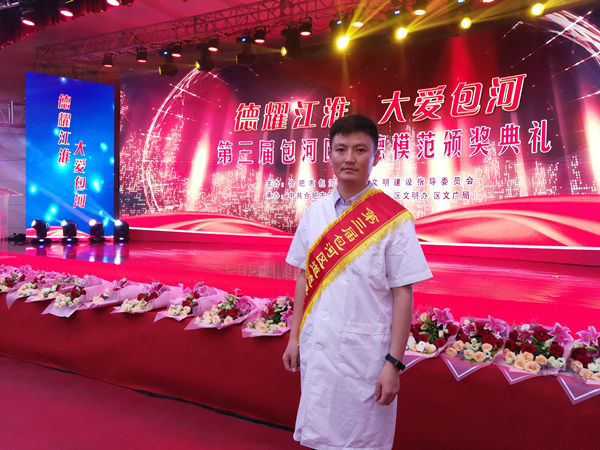 大爱包河”第三届包河区道德模范颁奖典礼隆重举行,滨湖医院老年科护士长杨彬获得道德模范提名奖。