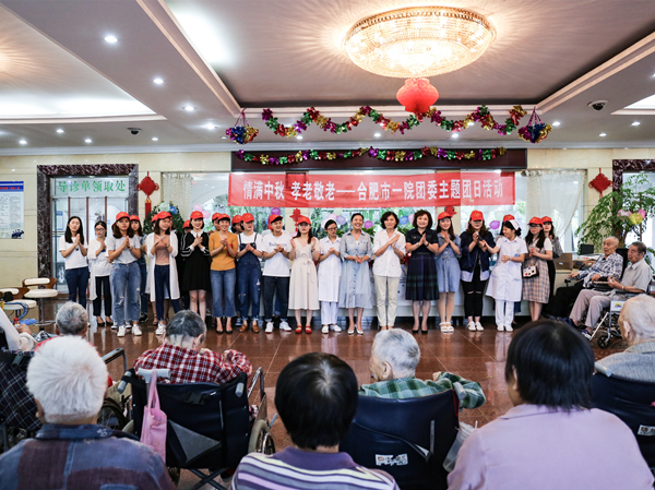 余名志愿服务者来到集团医院西区老年护理院,开展“情满中秋、孝老敬老”主题团日活动,通过节目表演、送月饼等形式与患病老人共度中秋佳节,弘扬孝老敬老精神。合肥市卫计委团委书记程玲、西区老年护理院院长饶晓兰、麻豆性爱