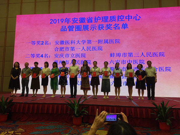 7月11日,由安徽省护理质量控制中心主办的2019年安徽省第六届护理质控中心品管圈大赛在合肥召开,合肥市第一人民集团医院课题研究型品管圈“阳光圈”获一等奖。