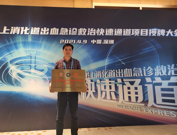 荣获大会颁发的国家“急性上消化道出血救治快速通道五星级救治基地”称号。