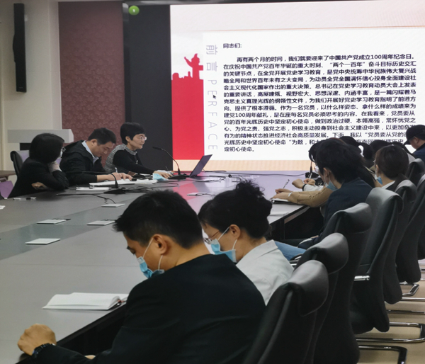本部行政支部在新综合体大楼九楼3号会议室组织召开“重温百年党史,传承红色基因”党史专题教育暨支部大会,共计34名党员参会。