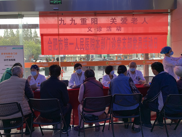 在门诊大厅开展义诊活动,给老年朋友送上一份节日的关爱。