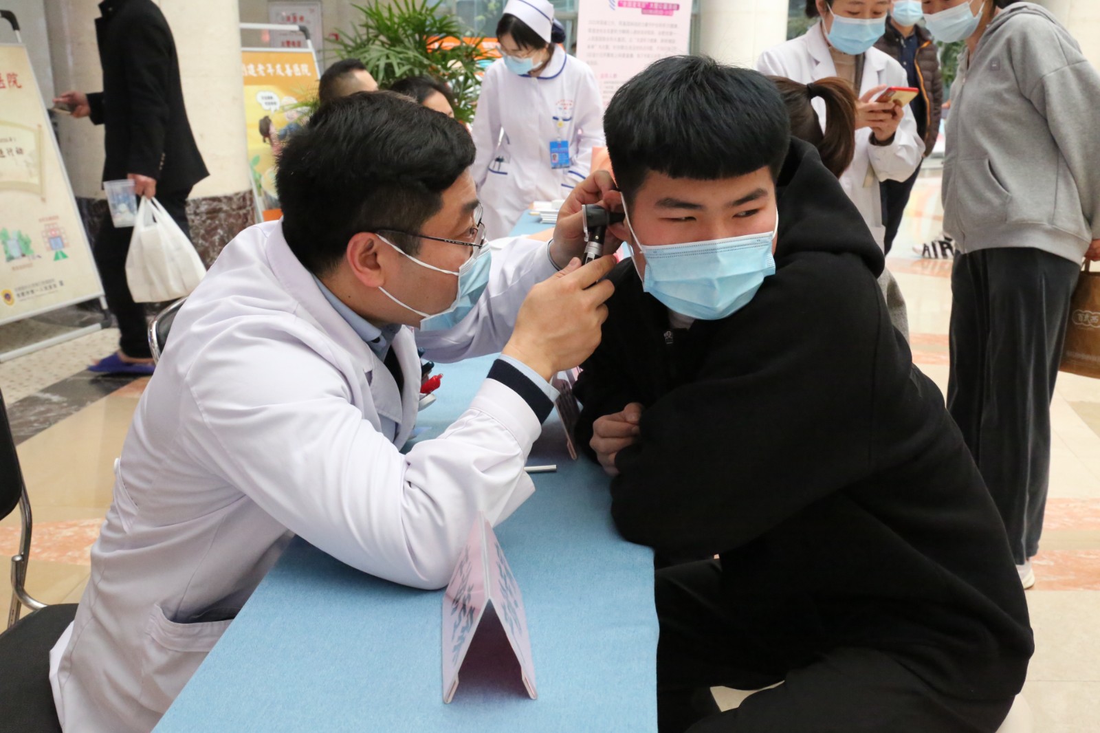 2022年3月3日是第23个全国“爱耳日”,为了提高人民群众的爱耳、护耳意识,有效减少听力残疾的发生,促进听力残疾预防与康复工作。麻豆性爱 联合华大基因,以“关爱听力健康,聆听精彩未来”为主题,在滨湖院区阳光大厅和本部门诊大厅分别开展了爱耳日健康宣教及专家免费义诊活动。医院产前诊断中心、耳鼻喉科、新生儿科、门诊部等医学专家为就诊者提供听力筛查、耳聋基因筛查、遗传咨询以及后续治疗与康复等方面的咨询和义诊,并送出了30个免费耳聋基因筛查名额。