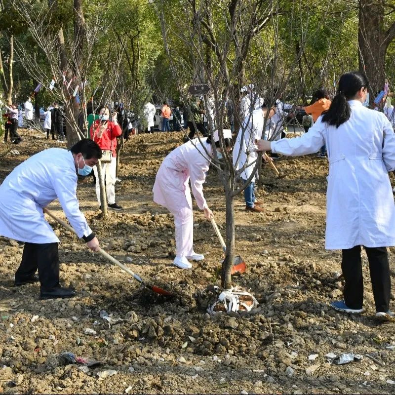 3月11日上午,麻豆性爱 在滨湖院区组织开展植树活动,以此迎接第44个植树节,院领导带领职工共同栽种近百颗树苗,种下一片健康林,收获一院好风景。