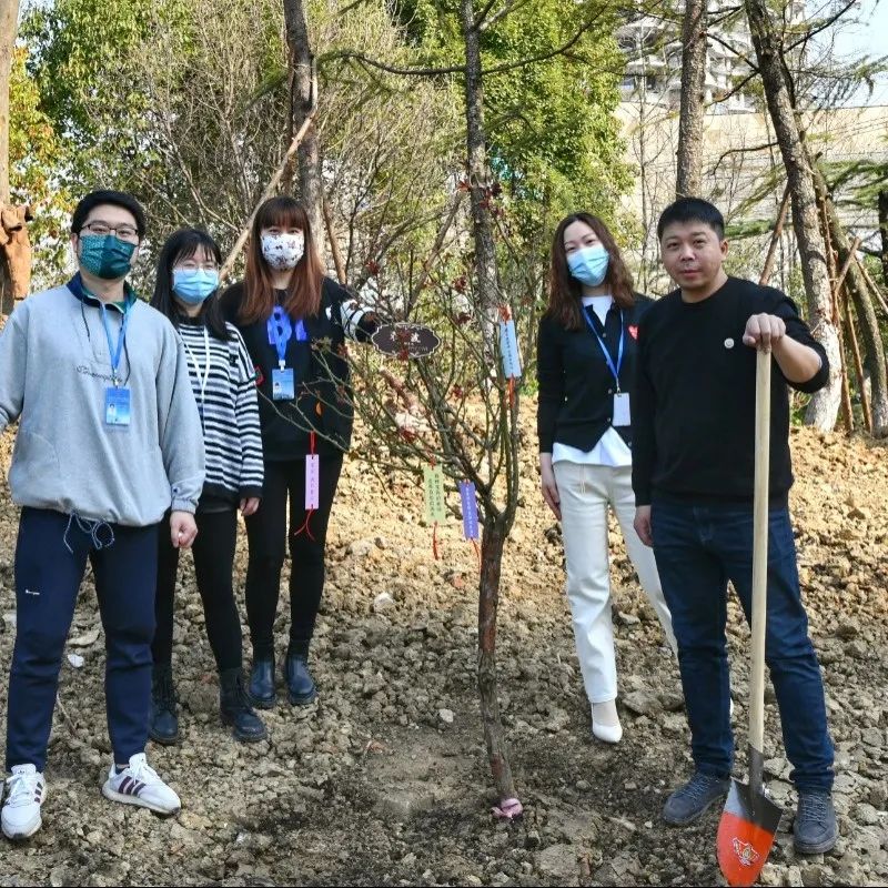 活动当天,阳光明媚、春风和煦。大家集合签到后,分别领取护树名牌和装饰挂卡,并前往指定植树区域。