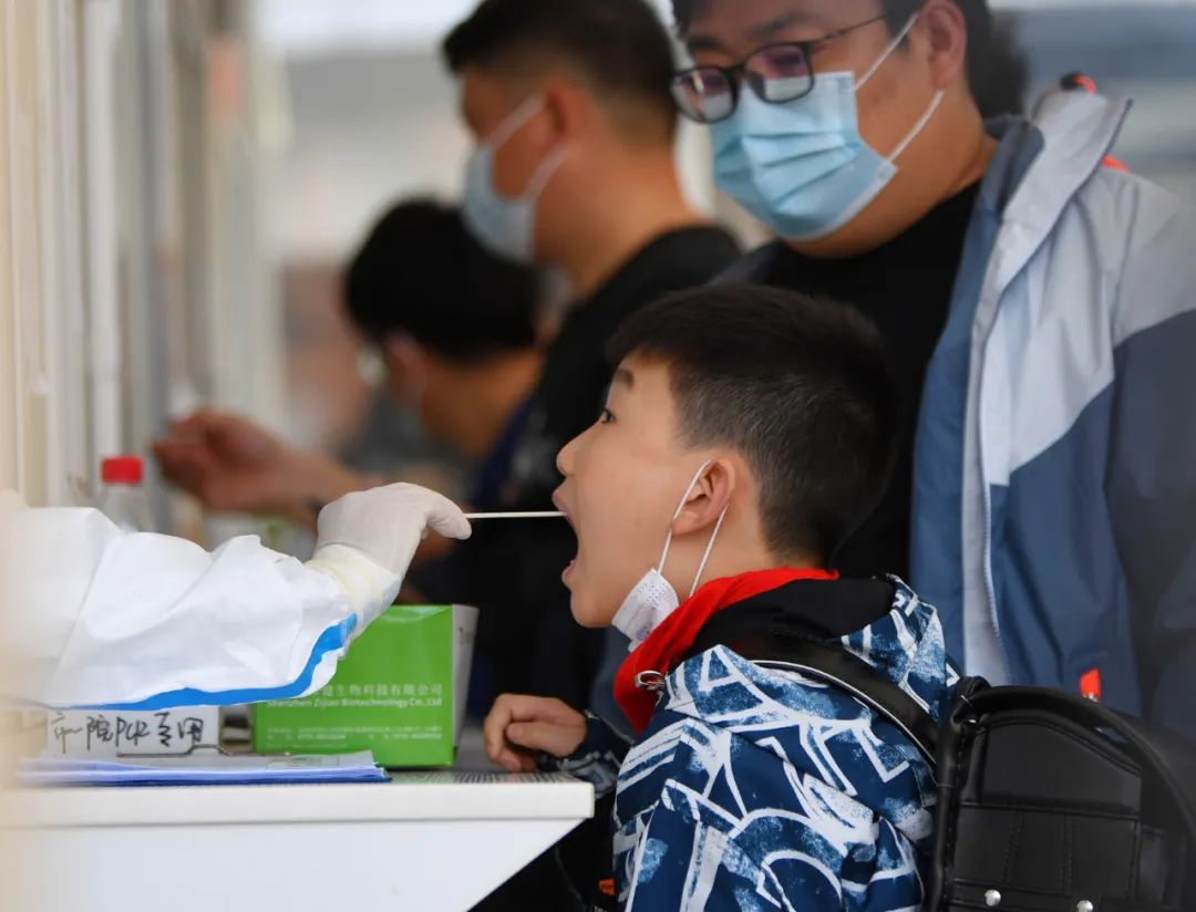 “请摘下口罩,‘啊’……”手捏拭子插入受检市民的咽喉处,快速地擦拭,并将拭子投入运送培养基,最后进行手部消毒,一次次重复的核酸采样动作,他们每天重复了成百上千遍,只为守护整座城市的安全。