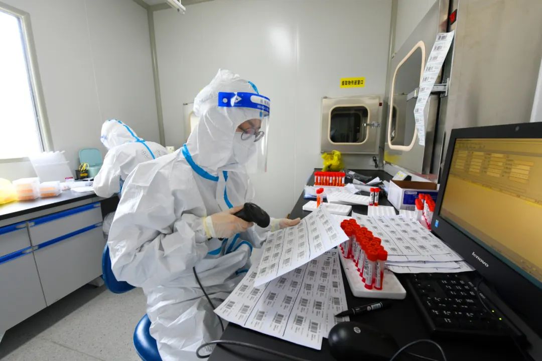 每天经手成百上千份样本都要确保万无一失,这需要工作人员保持高度专注力,不能有丝毫马虎。穿着密不透风的防护服,在“负压”的状态下高强度工作,是每一位核酸检测工作人员的常态。