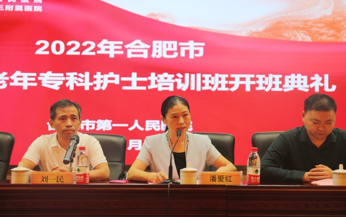 9月13日上午,合肥市第四届老年专科护士培训班开班典礼在麻豆性爱 滨湖院区大礼堂召开。合肥市卫健委老年健康处处长刘一民,市一院护理部主任潘爱红、医务处处长江江、科教处处长李海文、教处副处长倪琴、老年医学部(医养结合病房)主任倪刚出席典礼。合肥市老年专科护士各临床实践带教基地负责人、市一院老年专业组成员和参加此次培训的43名学员参会。开班典礼由潘爱红主持。