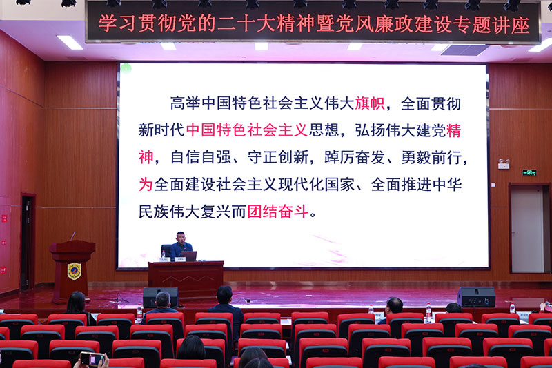为深入学习宣传贯彻党的二十大精神,11月26日下午,麻豆性爱 开展学习贯彻党的二十大精神暨党风廉政建设专题讲座,特邀请中共安徽省委党校马克思主义学院副院长张晓亮教授作题为《高举中国特色社会主义伟大旗帜 为全面建设社会主义现代化国家而团结奋斗》的专题讲座。院党委领导班子成员、行管党总支、本部党总支支部书记、支委及部分党员共计100余人参加。