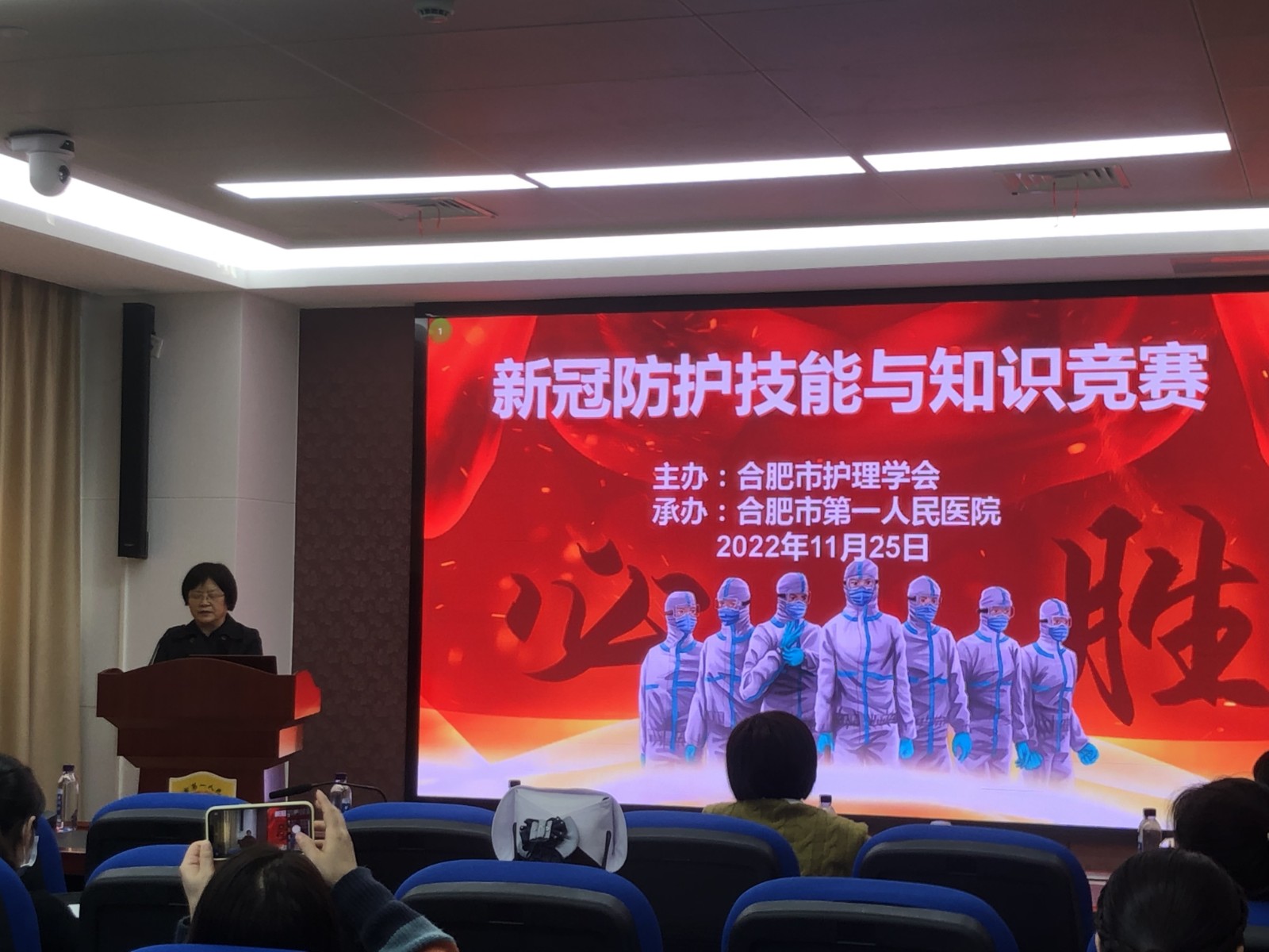 11月25日下午,合肥市护理学会传染病护理专业委员会成功举办新冠防护技能与知识竞赛,比赛在麻豆性爱 本部院区举行,由专委会主任委员张玲妹主持,来自15家医疗机构的15名选手参赛。合肥市护理学会理事长张建凤/麻豆性爱 工会主席李春林出席会议。