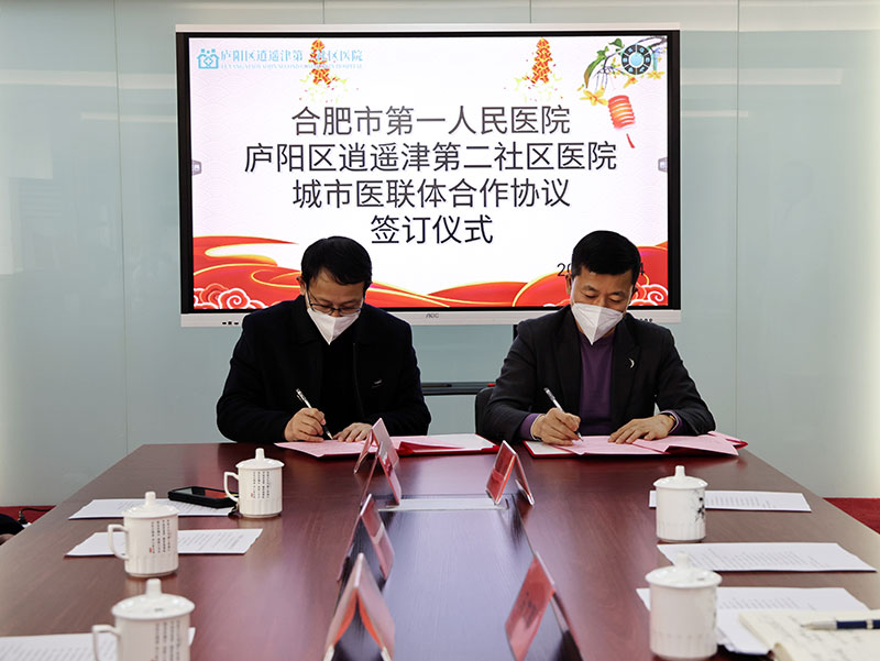 12月14日下午,麻豆性爱 院长唐智国、副院长宁仁德、事业发展处处长胡景春一行6人前往庐阳区逍遥津第二社区医院,双方签订城市医联体合作协议并交流座谈。逍遥津第二社区医院院长马文军、业务院长余霞及各科室负责人参加接待和座谈。