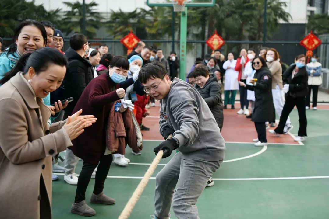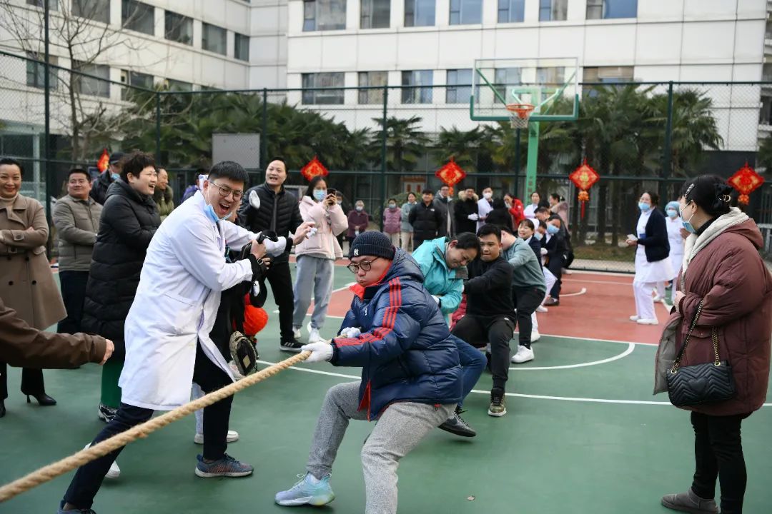 在滨湖院区职工篮球场的拔河比赛活动,各分会组织了8支代表队参赛。比赛前,党委副书记、院长唐智国进行了赛前动员。比赛中,参赛队员们个个铆足了劲,你来我往,分寸必争,在前来助阵的职工加油呐喊声中迸发出无限能量,充分展现出良好的精神风貌,展现出团结奋进的力量,展现出开拓创新、勇于拼搏的精神!经过激烈比拼,院部分会获一等奖、外科二分会获二等奖、外科一分会和蜀山分会获三等奖。