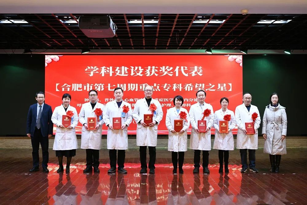 安徽医科大学副校长余永强,抗炎免疫药物教育部重点实验室主任魏伟教授,市卫健委医政医管处处长杨硕受邀出席大会。全体院领导班子,科主任、护士长、支部书记、行政中层和获奖代表参加会议,大会由副院长汪庆童主持。