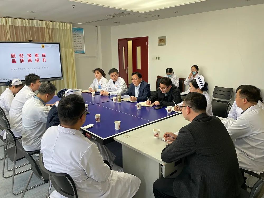 3月7日下午在滨湖院区医养结合老年科,姚院长在听取科室负责人倪刚的汇报后,肯定了医养结合特色品牌的建设,对医护人员为科室、医院发展所做出的努力表示认可,鼓励科室主动思考,积极奋进,超前谋划,共谋发展。同时,针对科室提出的意见建议,要求相关职能部门能够现场解决的立行立改,对于一时无法解决的问题逐条梳理,确保事事有着落,件件有回复。