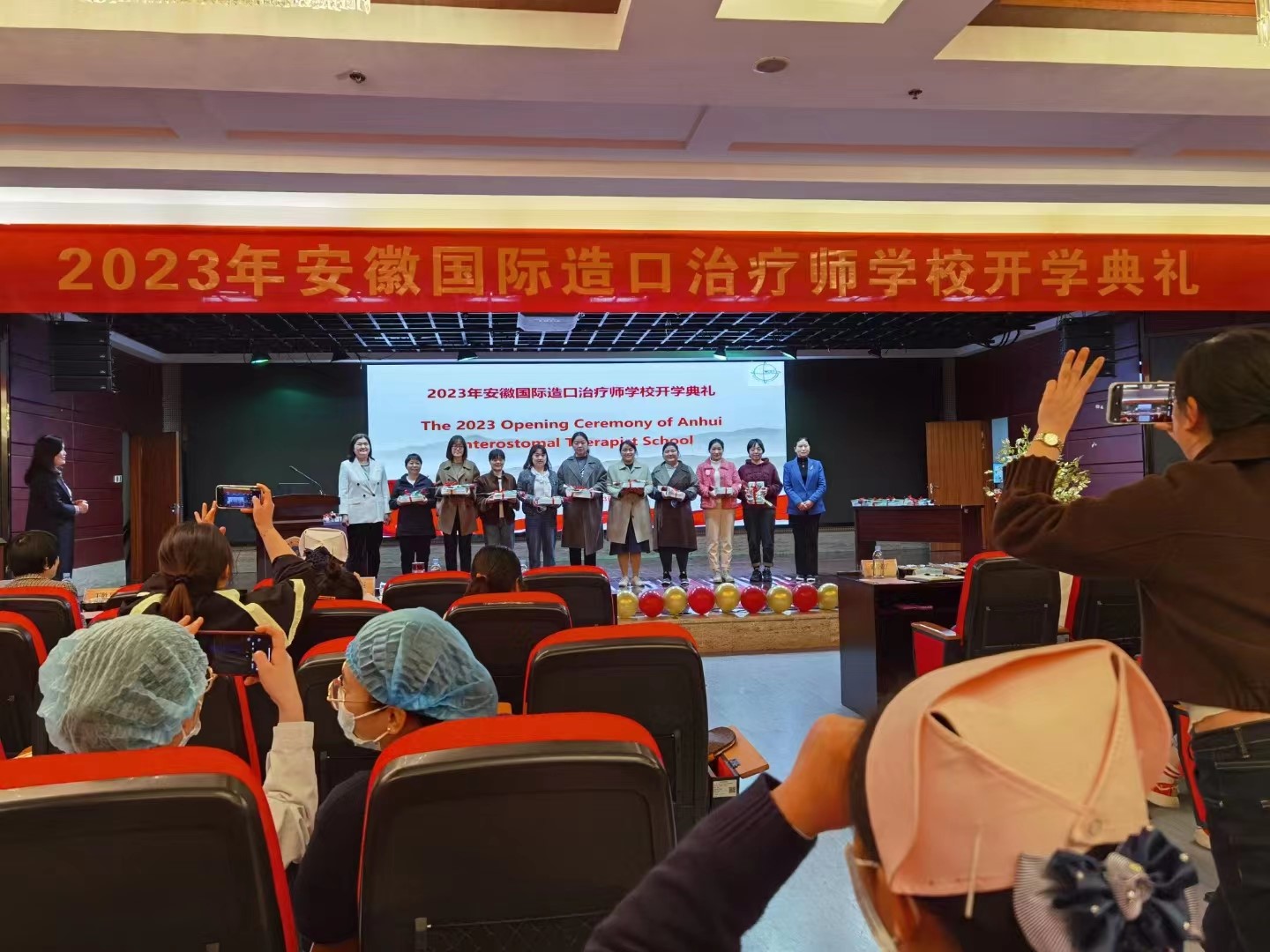 在开班典礼上,安徽国际造口师学校教学管理组向来自全国的26名学员赠送了专业书籍,通过视频,共同观看了安徽造口治疗师学校十年办学历程,整个开班仪式过程简短而隆重。