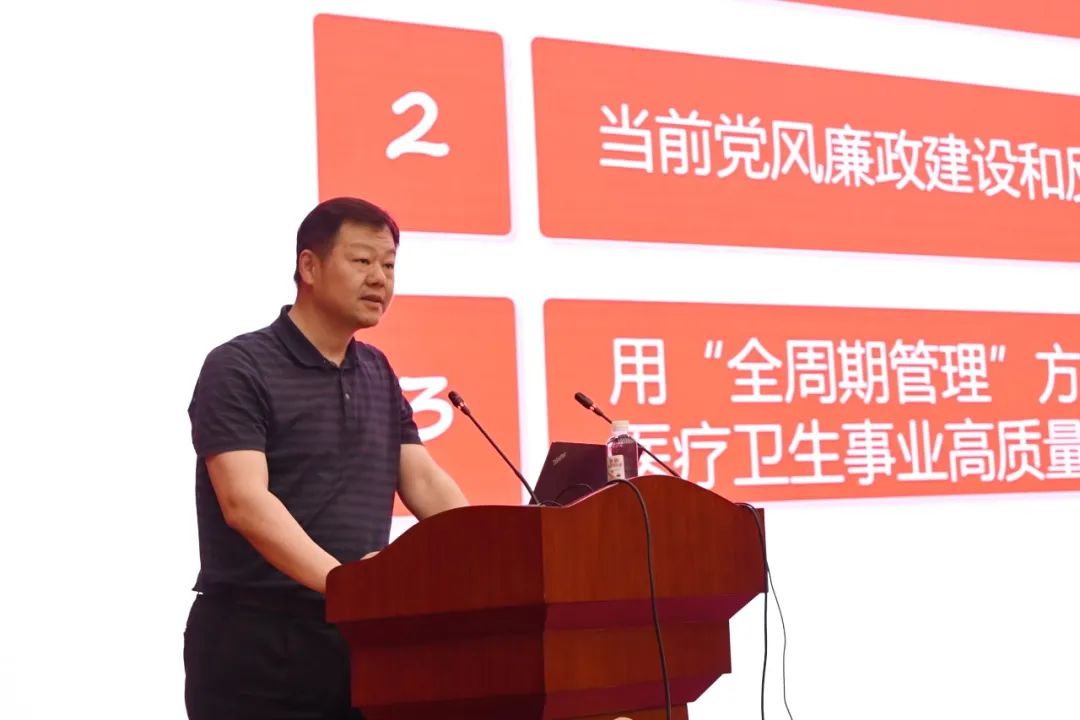 最后,钟平副组长讲授题为《坚持全面从严治党 强化行业作风建设 不断推动公立医院高质量发展》的廉政党课,号召全体党员干部必须以常抓不懈的韧劲和耐心,面对依然严峻复杂的反腐败斗争形势,面对“四个任重道远”阶段性特征,必须始终保持清醒头脑,增强政治定力,坚持严的主基调不动摇,推动全面从严治党、党风廉政建设和反腐败斗争不断取得新的更大胜利,为医疗卫生事业和医院高质量发展提供坚强保障!
