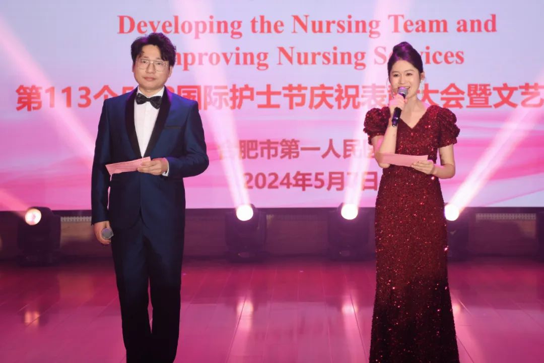 表彰结束后,下半场的文艺汇演在舞蹈《把未来点亮》的绚烂而美好中拉开帷幕,文艺汇演节目内容形式多样,有舞蹈、走秀、快板、健康脱口秀、合唱等。男护团队参与的走秀《护士风采》逗得大家开怀大笑;快板《听我说》让护士通过轻松幽默、欢快风趣的节奏,来展示护士们坚守岗位、辛勤工作的精神风貌;护士是天使的化身,是健康生命的守护者,他们用心血和汗水凝聚着每一份爱,在平凡的日子里,谱写了一曲又一曲的精彩赞歌,合唱《爱有力量》让我们共同感受到一场充满爱与力量的音乐盛宴;最后,一支舞蹈《援护,守护》表达了一个护士成长的经历,向辛勤守护在一线的同仁们表示了最崇高的敬意和继续守护人民健康的决心。