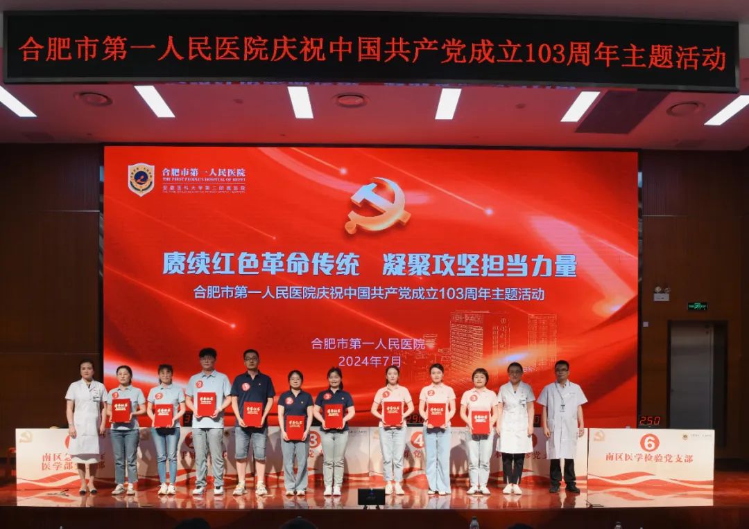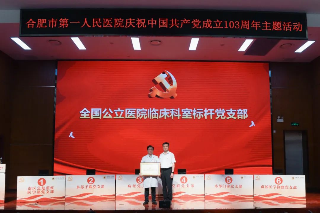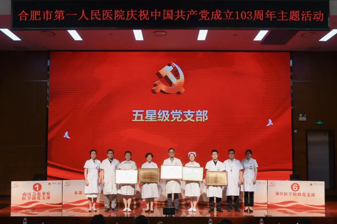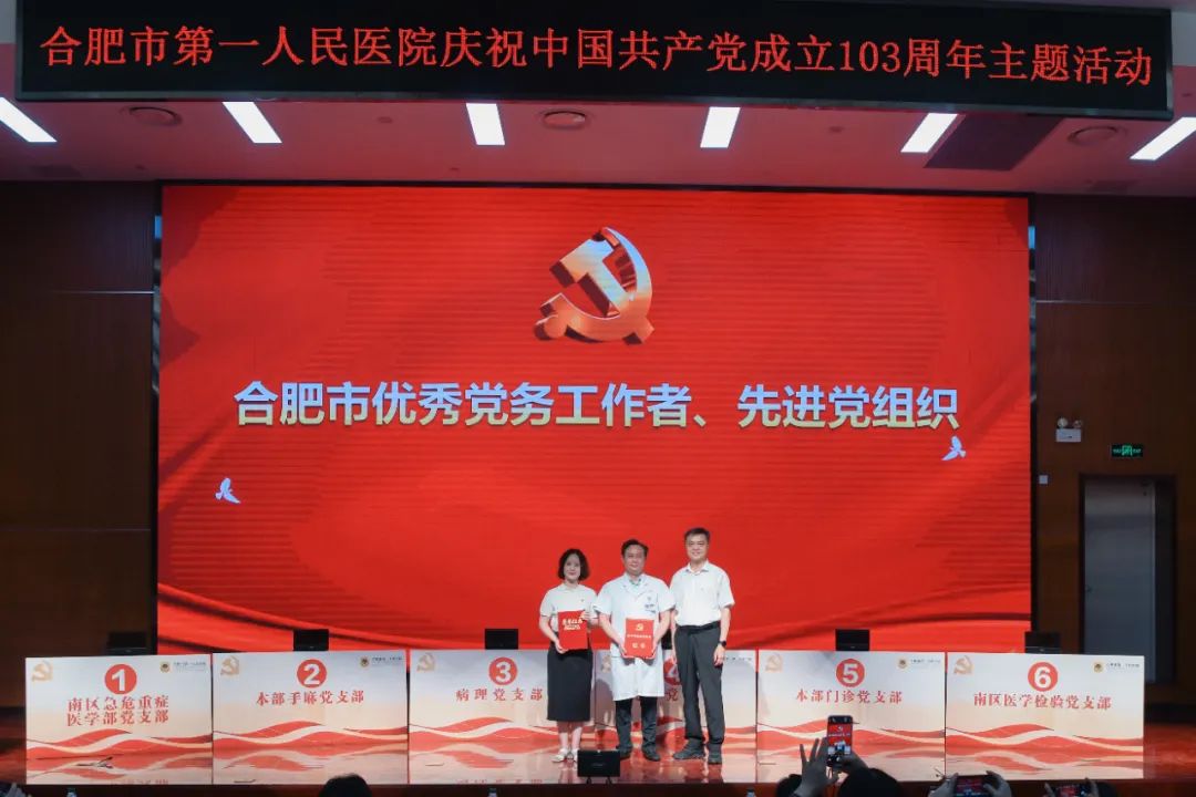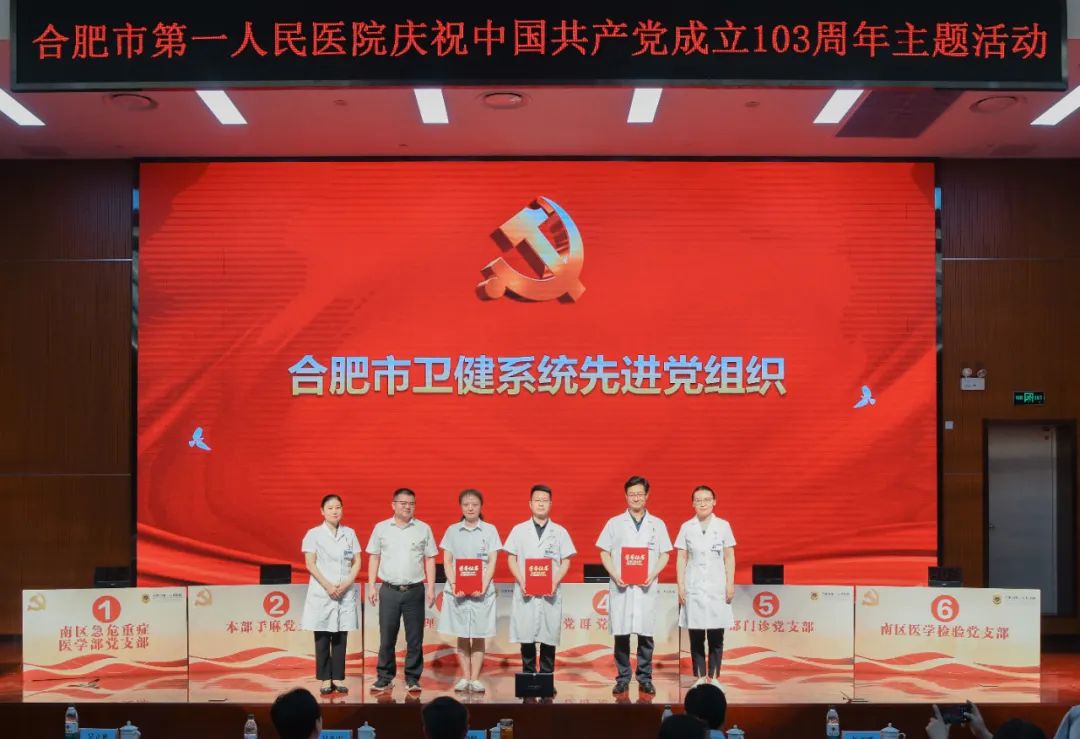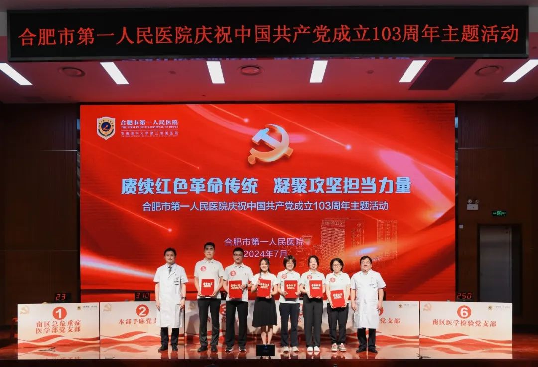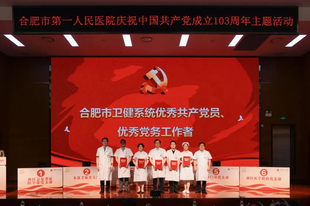 出席活动的领导还共同为获得2024年度合肥市卫健系统“两优一先”“合肥市优秀党务工作者”“合肥市先进党组织”的4个先进集体和6名优秀个人颁发荣誉证书,并对获得“五星级党支部”荣誉称号以及“全国公立医院临床科室标杆党支部”荣誉称号的六个党支部授牌。