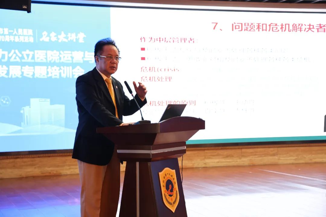 杨有业教授围绕医院中层干部履职能力提升,从新形势下医疗行业的特点出发,对中层干部的角色定位作用、中层干部如何提高履职能力、中层干部如何提高忠诚度和执行力等内容进行阐释。杨教授的授课声情并茂、金句不断,生动形象的案例和风趣幽默的讲解让人受益匪浅。院长姚登攀在总结讲话中表示,此次“名家大讲堂”聚焦公立医院运营与发展,既有丰富的理论知识,也有具体的操作实务,内容丰富,针对性强,对于医院积极应对运营和发展中的挑战具有很强的指导意义。希望各位参会人员能将所学知识应用到实际工作中,不断提升医院管理水平,为广大市民提供更优质高效的医疗服务。