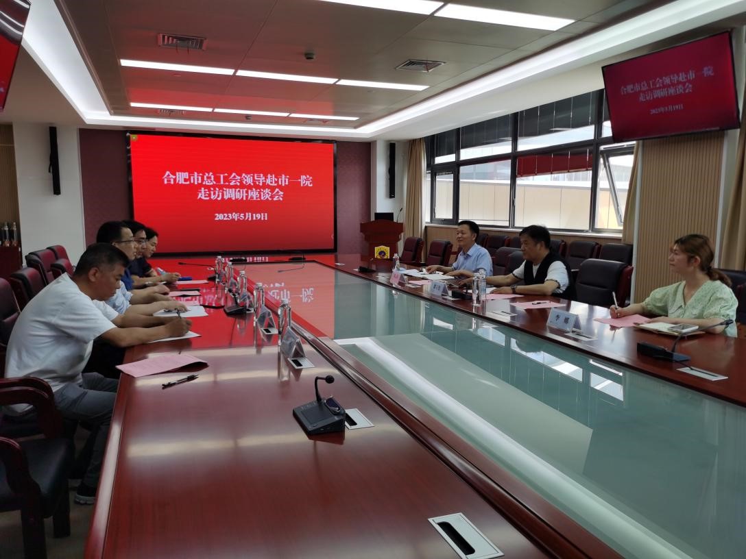 5月19日下午,合肥市总工会党组成员、副主席郭玉玺,市总工会文教工会主席胡云祥一行在麻豆性爱 走访调研基层工会工作。麻豆性爱 党委委员、副院长宁仁德,本部党总支书记、工会副主席王昌义,工会委员王华兵、王素真、彭敏等陪同接待。 郭主席一行参观了本部院区新启用的急诊急救大厅、已经部分启用的楼内休闲广场、即将完工的急诊和住院大楼空中连廊、门诊大厅,接着走进职工乒乓球馆、职工书屋等职工业余文化生活场所,在...