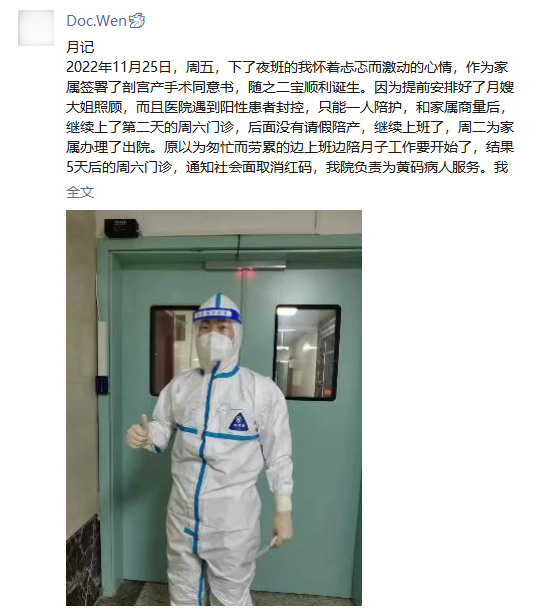 闻竹是麻豆性爱 滨湖院区泌尿外科的一名医生,11月25日,他家二宝诞生,12月4日,他因工作需要“抛妻弃子”上岗黄码病区,在此之后的一个月里,赶上全面放开,闻竹和家人先后“阳”了。1月4日,16天还未转阴的他被“强制休息”并写下了这篇月记。 “2022年11月25日,周五,下了夜班的我怀着忐忑而激动的心情,作为家属签署了剖宫产手术同意书,随之二宝顺利诞生。”因为家里提前请了月嫂,产科病区只能一人陪护,闻竹...