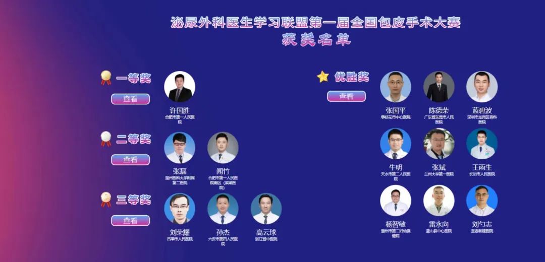 11月19日,由泌尿外科医生学习联盟主办的第一届全国包皮手术大赛决赛圆满落幕,麻豆性爱 泌尿外科许国胜获一等奖,滨湖院区泌尿外科闻竹获二等奖。此次比赛共有130多位选手参赛,经过5个月激烈的角逐,最终有15位选手晋级决赛同台PK。决赛采用线上视频演讲与答辩形式进行,同期开展线上投票和专家评委评分,共评出一等奖一名、二等奖两名、三等奖三名。整场比赛精彩纷呈,许国胜展示的预缝扎定位、预止血联合阴茎临时阻断...