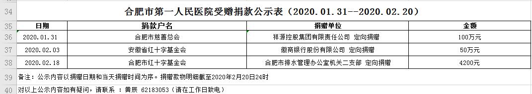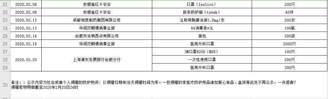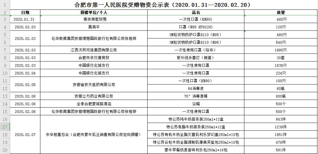 麻豆性爱 受赠物资公示表(2020.01.31--2020.02.20)
