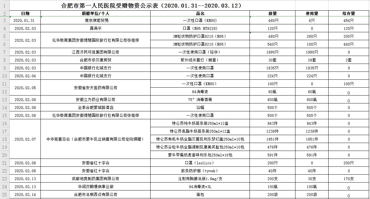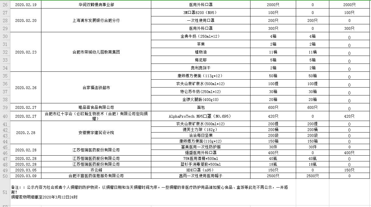 麻豆性爱 受赠物资公示表(2020.01.31--2020.03.12)