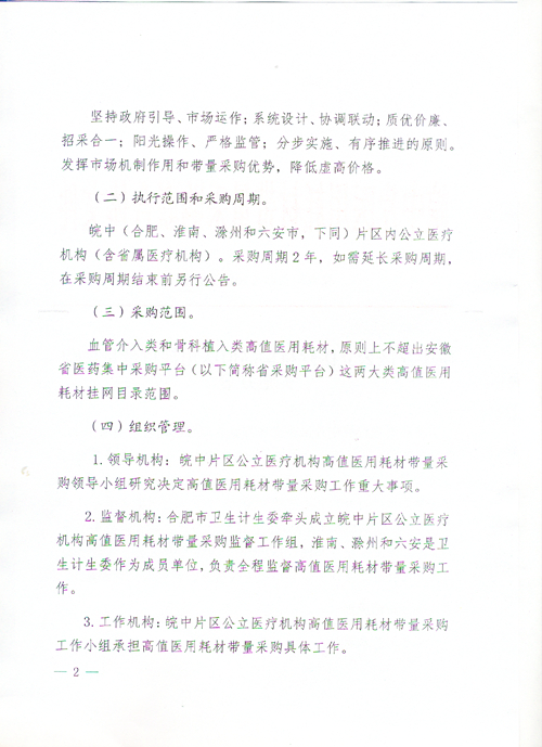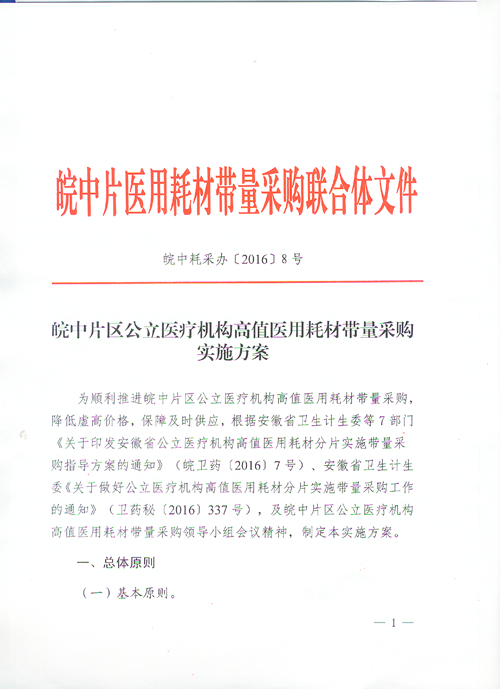 皖中片区公立医疗机构高值医用耗材带量采购实施方案
