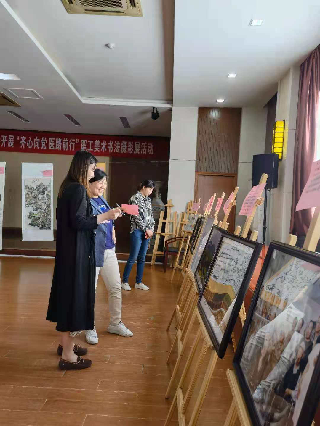 职工奋发向上的精神风貌,激发为医院发展和文化建设做贡献的热情,院工会于2021年5月20日-21日在行政大楼八楼会议室开展以“齐心向党 医路前行”为主题的职工美术书法摄影展活动。
