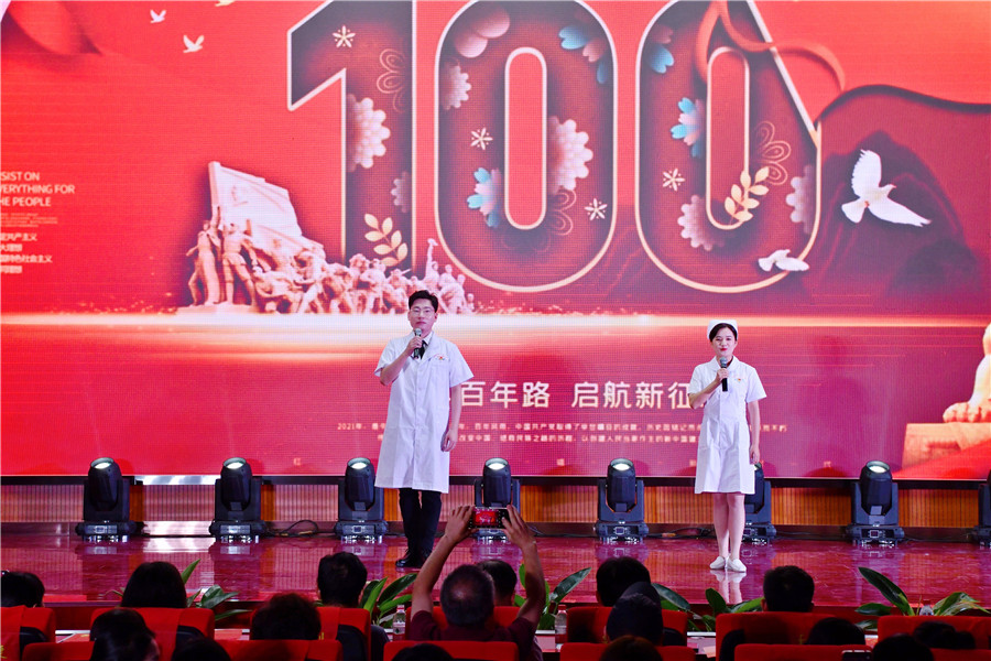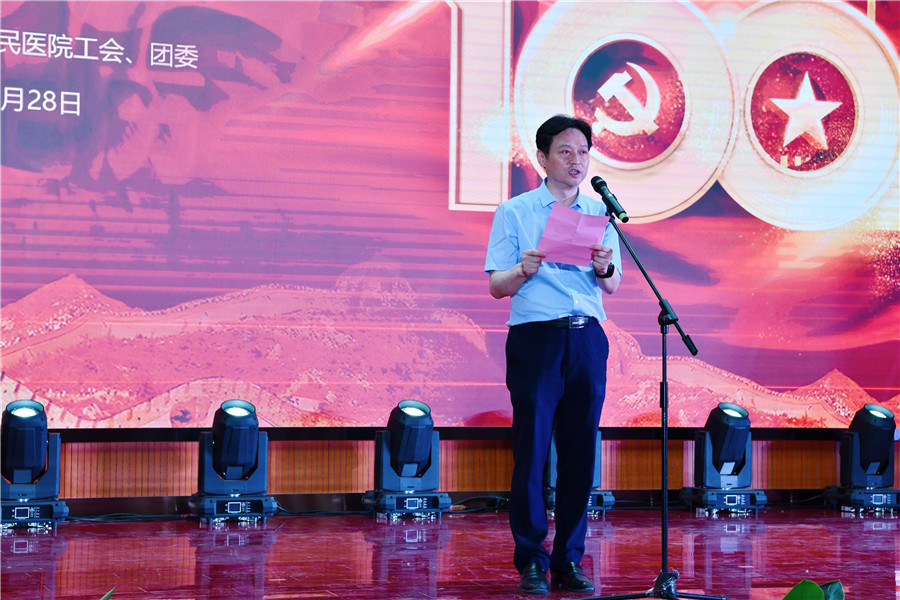 百年征程波澜壮阔,初心未变历久弥坚。为庆祝中国共产党建党100周年,推动党史学习教育学深做实,6月28日下午,由工会和团委主办的麻豆性爱 “百年谱芳华 丹心永向党”红色经典诵读在新综合体大楼大礼堂举行,院领导、科主任、护士长、支部党员及离退休职工代表现场观看。院党委书记吴冬雷致辞。
