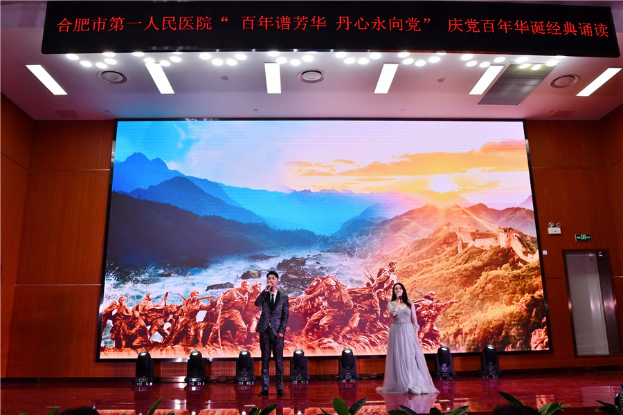 “忘不了,嘉兴南湖的红船,革命的火种悄悄点燃;忘不了,井冈山上的红旗,星星之火可以燎原”通过一篇篇诵读作品,配合背景音乐,歌颂中国共产党100年来的砥砺奋进和辉煌成就。伴随着职工艺术团舞蹈队带来的《我和我的祖国》正式拉开序幕,参与者个个作品选材新颖,主题突出,或激昂,或深情。有描述中国共产党诞生与发展的《船长的故事》,有对中国共产党充满无比热爱的《党的赞歌》,有歌颂革命志士舍小我、顾大国的《不朽》,有饱含对祖国浓浓深情的《我骄傲,我是中国人》,诵读者以不同的角度共同回顾党的奋斗历史,一句句深情的表达对党的赤诚之心,诠释初心使命,诉说担当作为,充分展示一院人对党忠诚、奋发有为、拼搏进取的精神风貌。