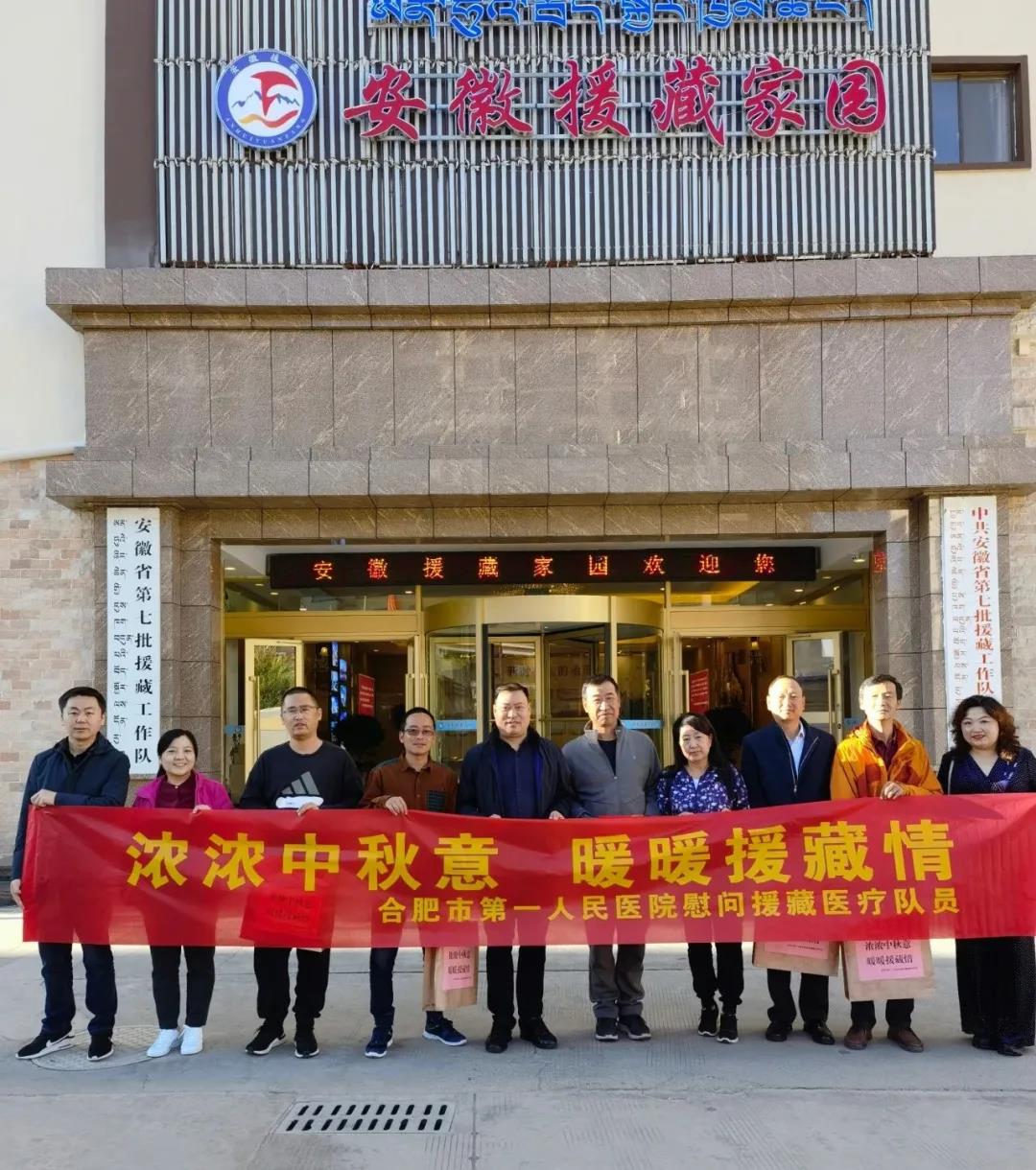 唐智国院长首先看望慰问了董春山主任及省第九批短期援藏医疗队队员,为队员们送上中秋月饼。随后参观安徽援藏家园,学习新时代党的治藏方略,详细了解安徽历次援藏工作概况,对援藏队员将援藏工作作为神圣使命、一生荣耀的崇高精神给予高度赞扬。在和援藏医疗队员的交流中,唐院长强调,要深刻领会习近平总书记对西藏工作的新要求,把习近平总书记的关心厚爱转化为强大的政治动力、精神动力、工作动力,积极为当地医疗发展贡献自己的力量。