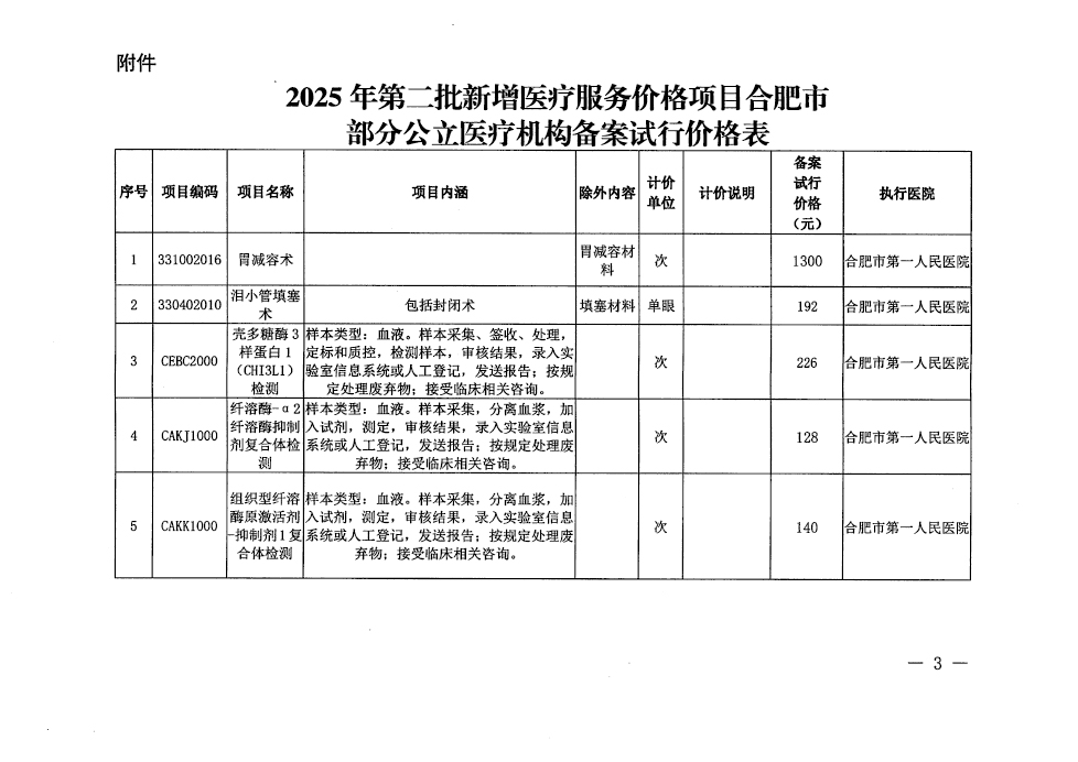 新增价格 ▏2025年度第二批批复新增医疗服务项目价格