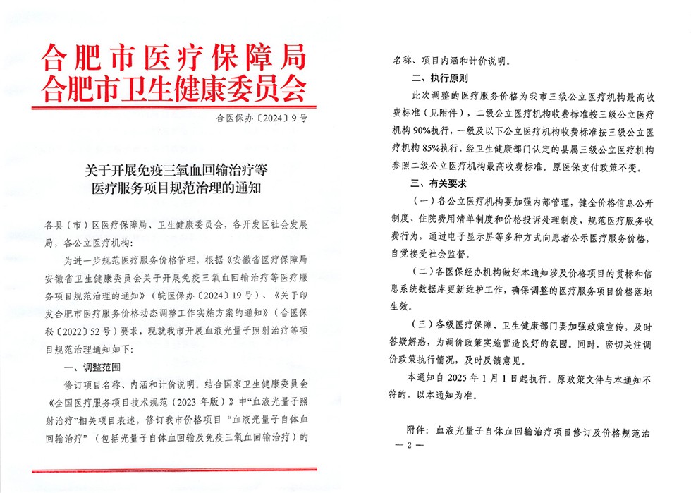 价格调整 ▏ 关于开展免疫三氧血回输治疗等价格项目规范治理的通知